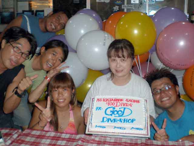 | その他 @ | POYON b さんが900本の記念ダイビングになり、GOOG DIVE SHOP よりケーキと風船で祝ってもらった。 | |||