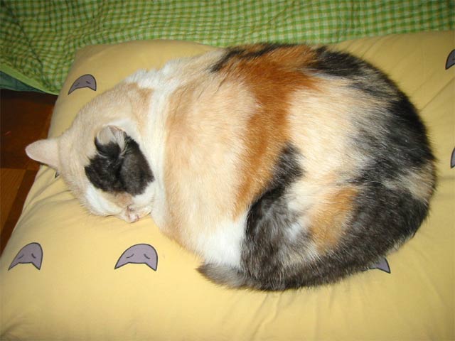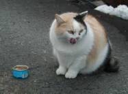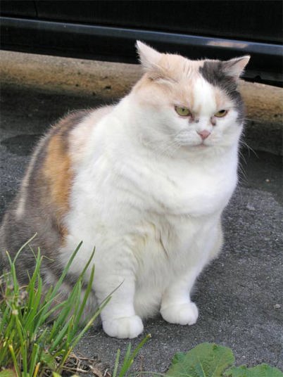 隣のおじさんとおばさんが飼っている三毛猫。 年齢は不詳。雨が降ったり雪が降ったりすると、元気に外へ出て飛び回る犬のような猫。おじさんの車の下や主人の車の下、おばさんのバイクのシートの上が大好き。うちの車庫も大好きで、昼間はここで過ごすらしい。主人の車のフロントガラスや屋根には、ナナちゃんの足跡や滑って遊んだ跡がある。主人も猫好きなので、洗車をするのがもったいないと言っている。私は、何回も、中にナナちゃんがいるとは知らずにシャッターを下ろしてしまったことがある。隣のおじさんが、申し訳なさそうに泣き声を聞きつけて、「開けてください。」と、訪問されたことがあった。 |