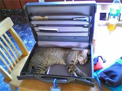 エジプトのサイナイダイバーズのガイド、Iさんの飼い猫、ニャニャ。当時は子猫だった。40何度の暑さの中、猫の泣き声がするので、声をたどってみたら、ショップの屋根の上に、子猫がやせ衰え震えながらいたそうです。急いで友人の獣医さんに注射をうってもらい回復を待ったそうです。注射がよく効き、日に日に回復をして、人気者になったニャニャ、毎朝、Iさんと一緒に出勤をして、ケロッピーのお弁当箱にキャットフードを入れてもらって食べていました。犬にも戦いを挑む勇敢な猫です。 お母さんの事を知らないので、Iさんを母親だと思い込み、眠たくなると、[say cheese]と書いたTシャツをしゃぶりながら眠りについていました。 私達は、ニャニャを交代で抱っこしましたが、主人のひざの方が心地よさそうでした。ある日、うとうとと主人の腕の中で眠りについたニャニャ。すっかりリラックスをしてこのまま朝までぐっすりかなと思っていたら、突然、ダダをこねだして、Iさんの方へ行くと言い出しました。ついつい気持ちがいいのでうとうとしてしまったが、夜中に目を覚ましたら、様子が違ったので慌てたのでしょう。まだ、元気かな。 |