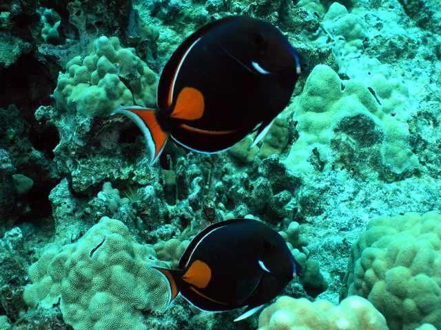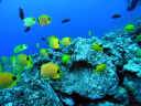 | DIVING | 予想はしていたが水温は24℃で3mmのウエット・スーツ(コレしか持ってない)では少々寒い、忍耐ダイビングになった。 透明度は30m以上あり気持ち良いのだが魚は本当に少ない! サイパンやロタのマリアナ諸島が魚が少ないと言われているが、HAWAII島の魚の少なさは比較にならないほど何もいないといった感じ。 有名なナイト・マンタのダイビングにも行って、寒いナイト・ダイビングで40分ほどじーっと待ったがマンタは出なかった。翌日以降は出ていたようだが、寒さと値段での価値を見出せないのでもう行かなかった。 HAWAII島でのダイビングは観光のついでに1日か2日間潜るのが普通のようで、poyon さんのようにダイビングだけが目的のダイバーには不満の残ることになる。 |