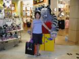 サイパンのDFSで,あのクリバンキャットのぬいぐるみを発見。やっぱり大きくてかわいい。どうせつれて帰ることができないからと思い,一緒に写真をとって,肉球などを触ってみた。 その帰り,グアムの今度は町の中のDFSでクリバンを発見した。あの空港にいたクリバンなのか,それとも,あと1つあったクリバンなのかは分からない。お店の人に,念のために聞いてみたら,「これは500ドルだから,残りの300ドルをこのDFSの中で,何でもいいから買い物をすれば,日本に宅急便で送ることができる。」と言うラッキーな話。DFSには,全部で800ドル買えば,宅急便で日本まで送ってくれるシステムがあると言うことらしい。あと300ドルのために,いろいろ迷ったがバーバリーのバックとランコムの化粧品を買ってクリバンのお店にもどった。これだけで,1時間ぐらいかかった。今度こそ,日本へつれて帰るぞ! ところが,またしても・・・。こういう制度はあるけれど,このぬいぐるみは大きいので適用されないというショックな話。それほど大きいのだ。500ドルとは別に800ドルかかるらしい。1300ドルは,やっぱり大きいので,またもやあきらめることに。日本へは,どうしてもつれて帰れない。悔しかった。ダイビング目的のサイパンへの旅行を一回止めれば,金額的にはクリバンの購入は可能なのだが・・・。 |