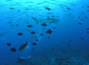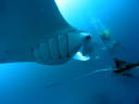 | DIVING | 去年に続いて年末年始のパラオ。ベストシーズンなので7日間のダイビングを充分楽しめる予定だった。 日本は異常気象のような暖冬になっているが、パラオもちょっと変な感じだった。7日間のうちで5日間は雨降りでボート上は本当に寒かった。毎日の楽しみなドラゴン亭のうどん弁当も雨は吹き込んでしまうし、冷たさで、まったく食べた気がしなかった。雨が降らなかった2日間もすっきり晴れたわけでなく曇りがちの天気だった。 でも、風は順当に東風だったため西側のポイントへ行くのにはまったく問題なく、10回以上行っているパラオで初めてマクロポイントへ1回も入ることがなく、この面ではラッキーだった。 海はジャーマンではブラックとホワイトのマンタが捕食でグルグルを見て楽しんだが、マンタの食事時間、つまりプランクトンの多い時なので当然濁って、すっきりした写真は撮れない ブルーコーナー、ニュードロップでは殆ど流れがなく、ギンガメアジ、バラクーダの群れも小さく迫力不足。シアズコーナー、ウーロンチャネルではパラオらしい流れを潜ることが出来た。 |