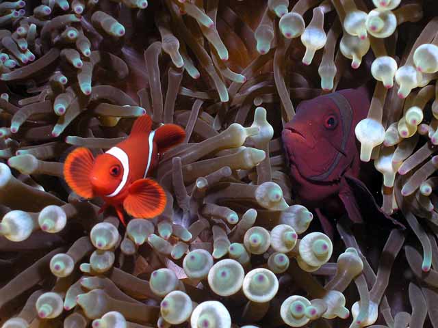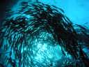 | DIVING | モンスーン・シーズンのシパダンだったが、多少の波がある程度で、マブールからシパダンへのボートやダイビングには全く影響なかった。 今回はSMART(SIPADAN MABUL RESORT)を利用。ボルネオ・ダイバーズと同じように早朝の5時30分の出発がメインになっている。シパダンの入島制限にかからない為とカンムリブダイを確実に見せる為の狗肉の策と思われる。確かにカンムリブダイのお出かけには出会えるが、写真を撮るのにはチョッと暗すぎて良くない。 定番のギンガメアジ、バラクーダの群れに加え、ハンマーヘッド・シャーク、デビルレイなども見る事ができたが、透明度は20m程で普通のシパダン。去年の8月のようなクリアな海ではなかった。 無制限のショア・ダイビングが可能なのだが、このポイントは砂地に人口漁礁がいっぱい置いてあり、ギンガメアジの群れが根づいているだけ。いくら無料の無制限ダイブと言っても一度潜れば十分。ボルネオ・ダイバーズのサンセット・セルフ・ダイブ(ボートでパラダイスUを潜る)の方が断然良い。 |