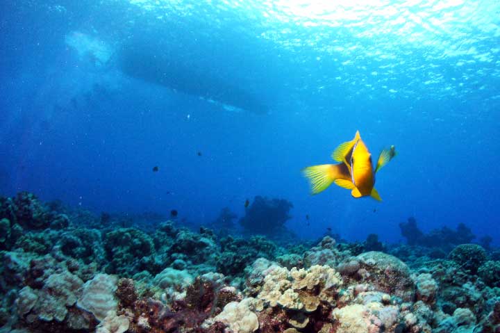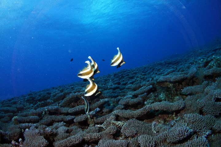| DIVING | 風が強くてポイントも限定されたが透明度は良くインリーフでも気持ち良くダイビングできた。 ここ数年、イーグルレイ・シティがらいなくなってしまったマダラトビエイがランディング・クラフトのあたりで出ていて、50枚以上の群れが見られた。ただ以前のように目的の根に集まっているという感じではなく、何もない砂地に集まっていて、そのためかダイバーが近ずくと離れて行ってしまう。透明度が良くてもワイドの写真は難しい。 |