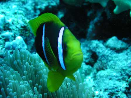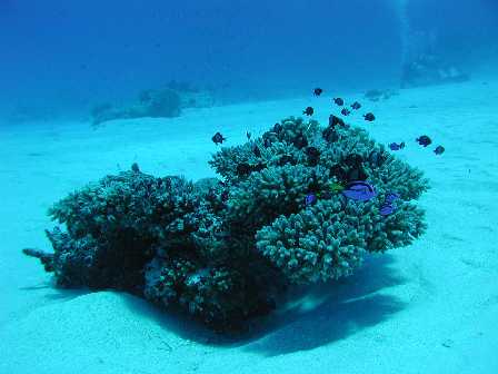 | 海の生物 | オビテンスモドキ( yg )、ウコンハネガイ、ナンヨウハギ (yg )の群れ。 |